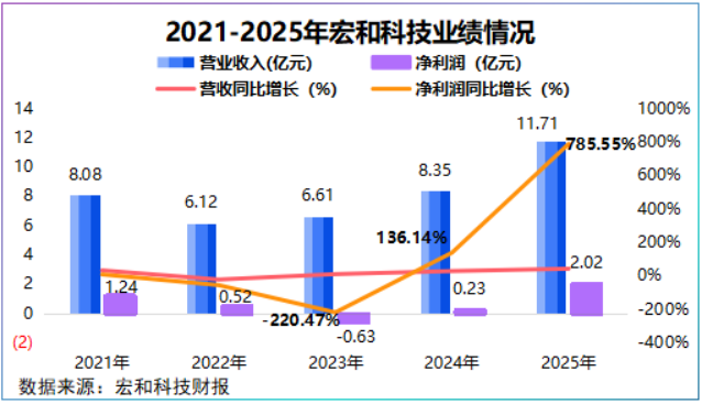2025年,宏和科技实现营收11.71亿元,同比大增40.31%,净利润更是同比猛增785.55%,达到2.02亿元,这一增速已超过中国巨石、山东玻纤和国际复材。