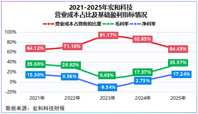 如此一来,公司整体毛利率从2023年8.83%直线上升至35.57%,净利率更是从-9.54%跃升至17.24%,三年提高26.78个百分点。
