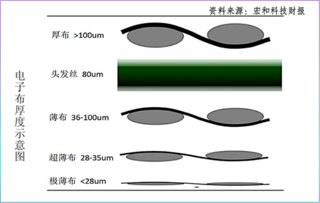 价值量上,超薄型>薄型>厚布,特种电子布、石英电子布>E-玻璃布。