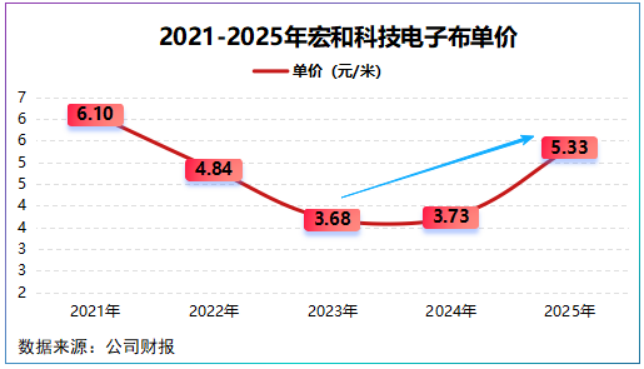 2025年,公司电子布单价高达5.33元/米,同比增幅接近43%,销量不变,价格飞涨利润自然坐上火箭。
